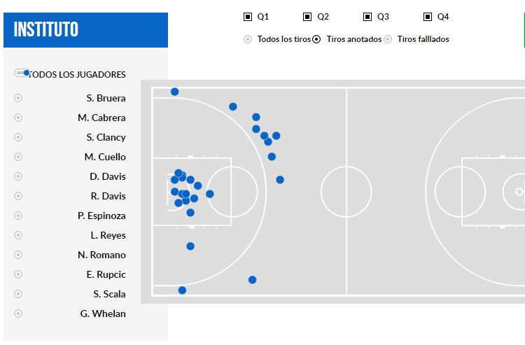O mapa de arremessos do Instituto de Córdoba no primeiro jogo contra o Flamengo